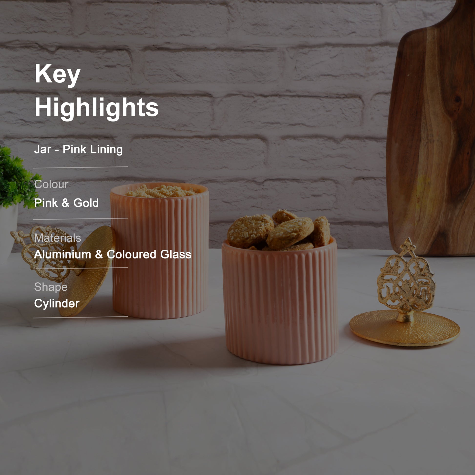 Pink Lining Glass Jar With Metal Lid - Medium