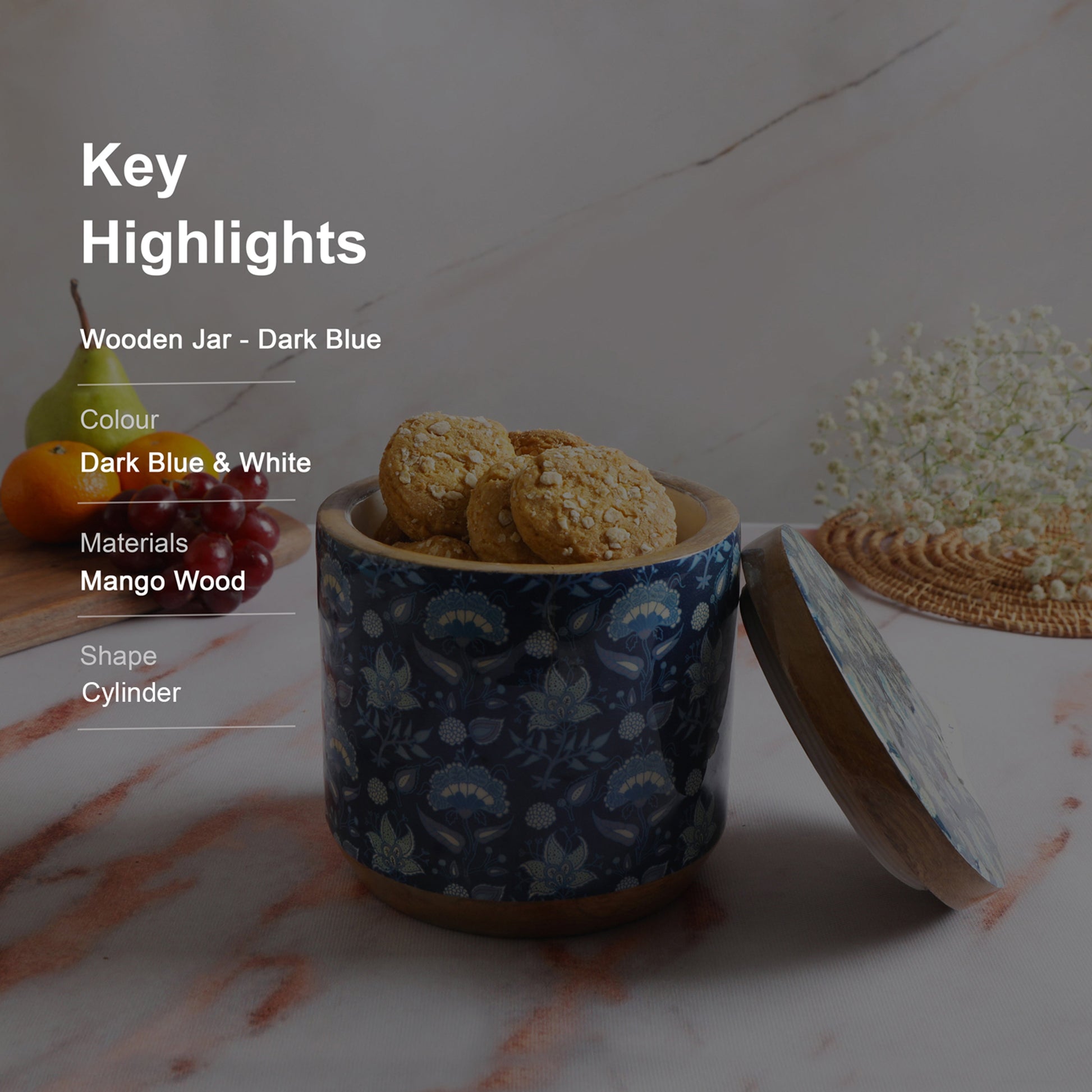 Blue Printed Enamel Mango Wooden Jar